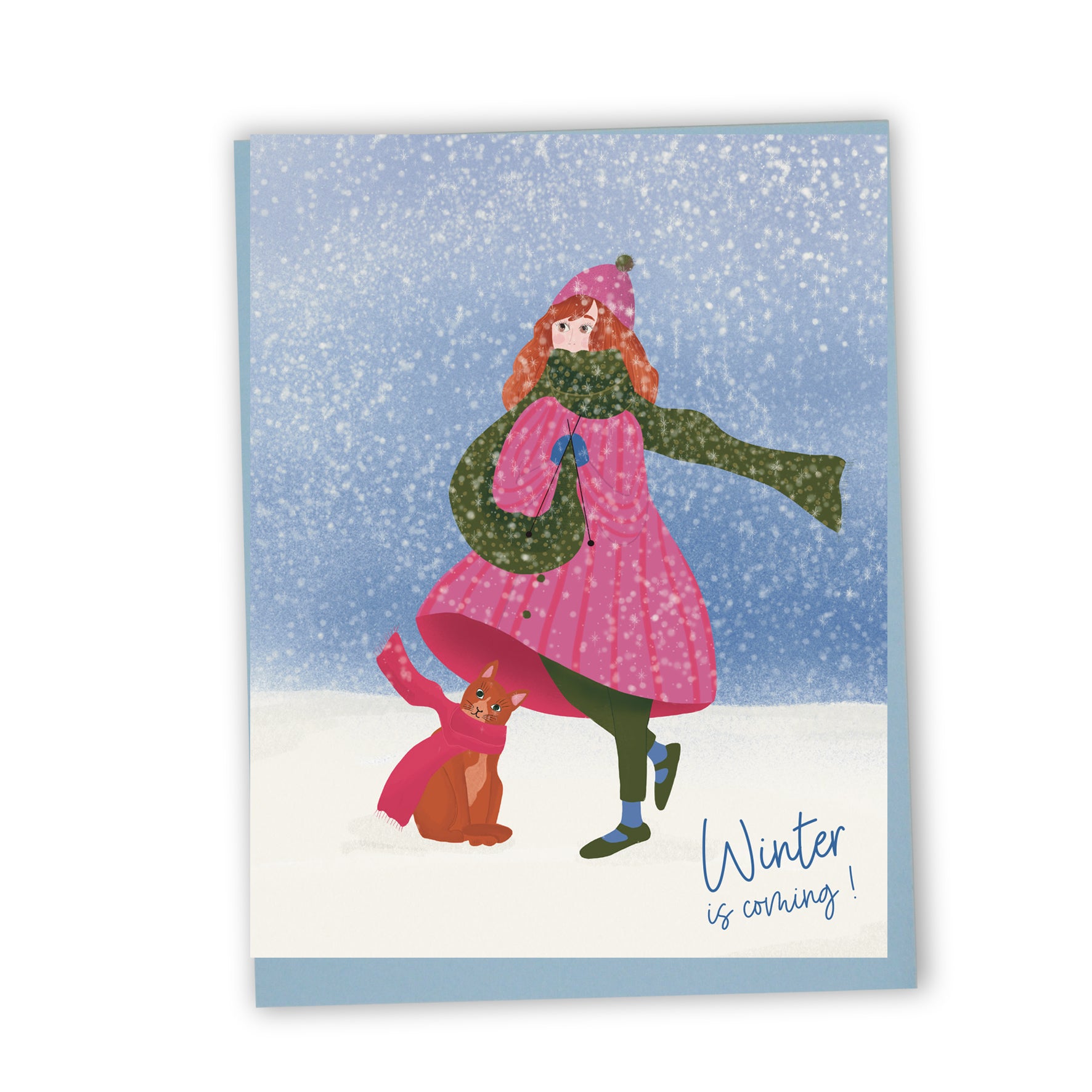 When winter arrives in Montreal, it's time to bundle up and enjoy the falling snow! A lovely, colorful, and humorous card to embrace the cold !