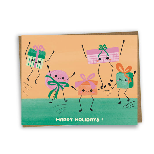 Carte de souhaits illustrée – Cadeaux kawaii dansants