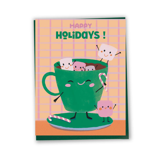 Carte de souhaits illustrée – Joyeux temps des fêtes (Chocolat chaud)