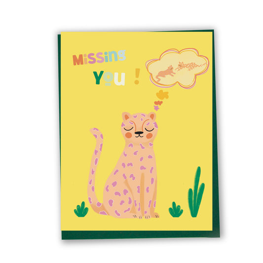 Carte de souhaits illustrée – Tu me manques (Guépard)