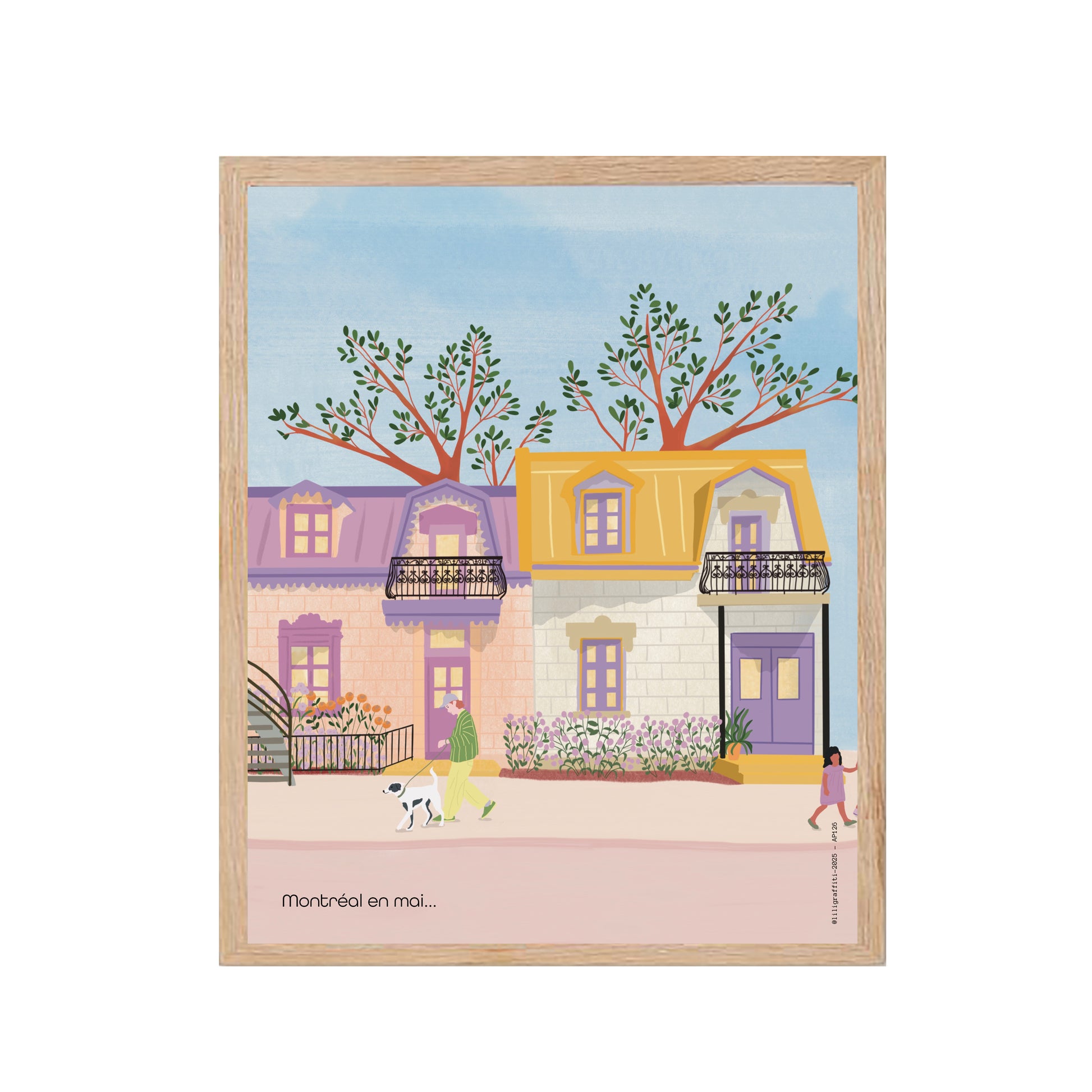 Invitez le printemps chez vous avec cette affiche murale illustrant un coin paisible de Montréal en mai. Les façades colorées, les arbres en fleurs et la vie de quartier tranquille évoquent toute la douceur du retour des beaux jours. Une création lumineuse et joyeuse signée par l’illustratrice Marie-Laure Plano.