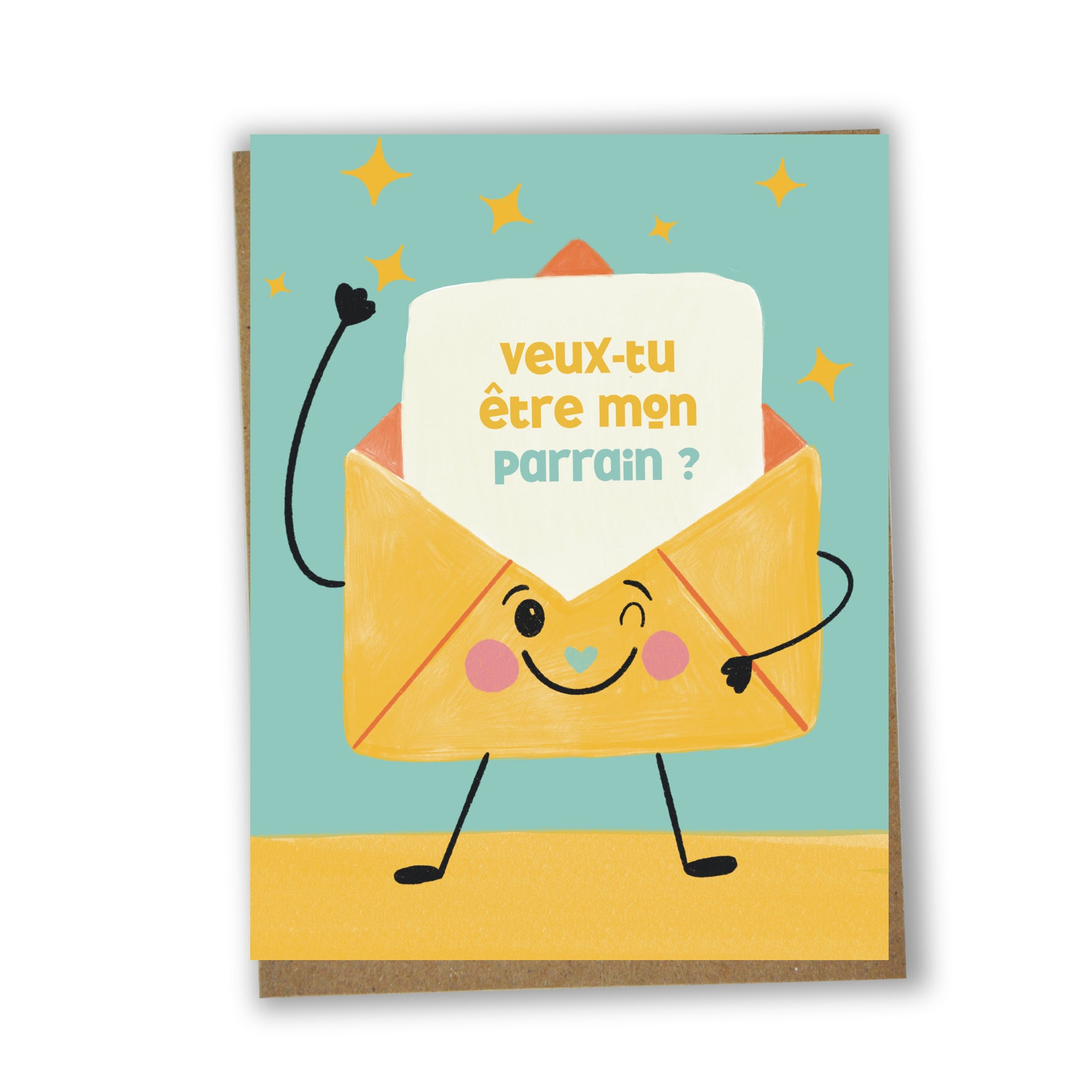 Carte de souhaits illustrée – Veux-tu être mon parrain ? | Papeterie montréalaise