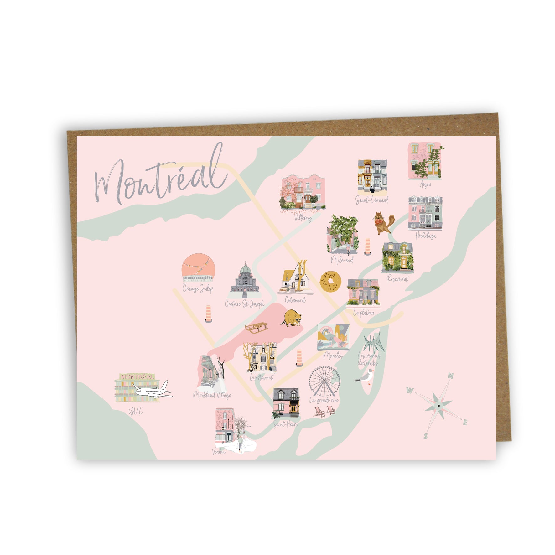 Carte de souhaits illustrée – Carte de Montréal iconique | Papeterie montréalaise