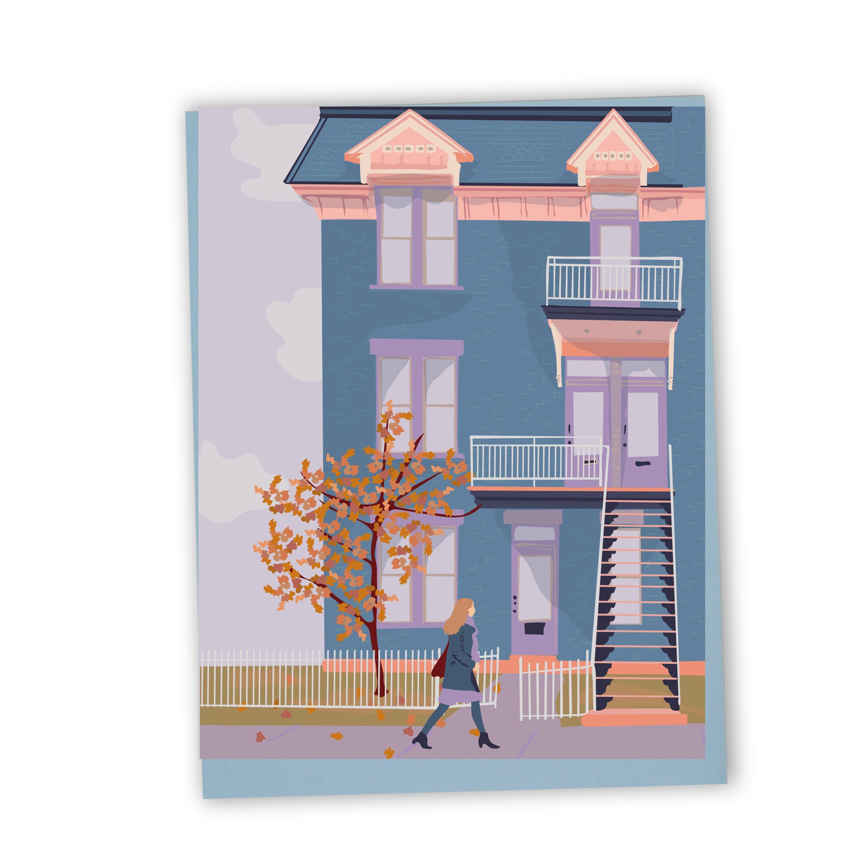 Carte de souhaits illustrée – Quartier Rosemont en automne | Papeterie montréalaise
