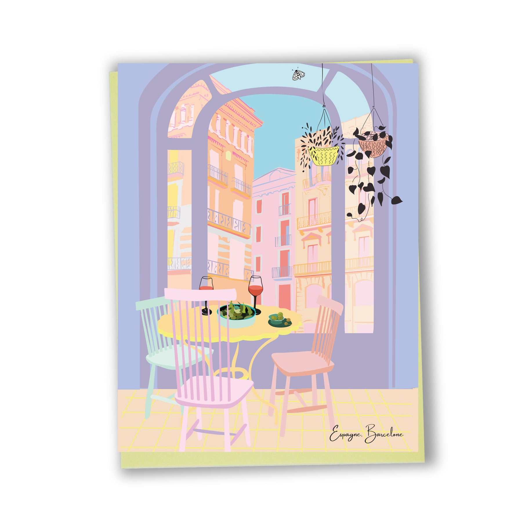 Issue de notre calendrier voyages deuxième édition, l'illustration Barcelone est désormais disponible en carte de souhaits!