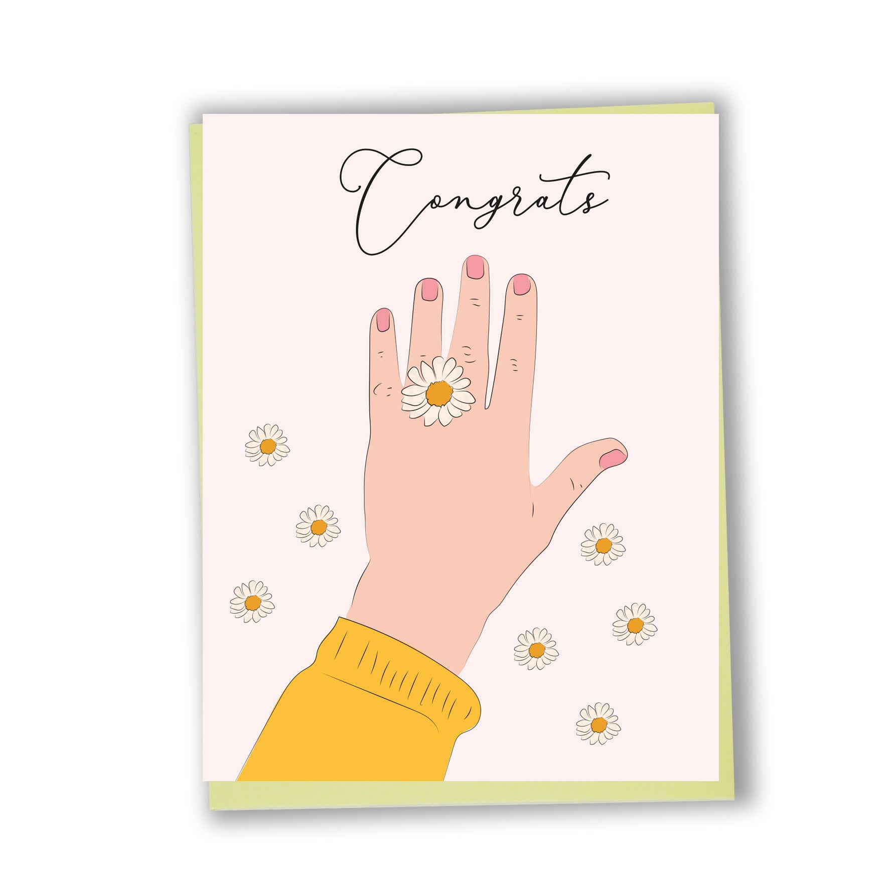 Une belle attention fleurie pour féliciter un couple nouvellement engagé. C'est le genre de cartes qui sera conservée pendant des années et relue avec émotion.