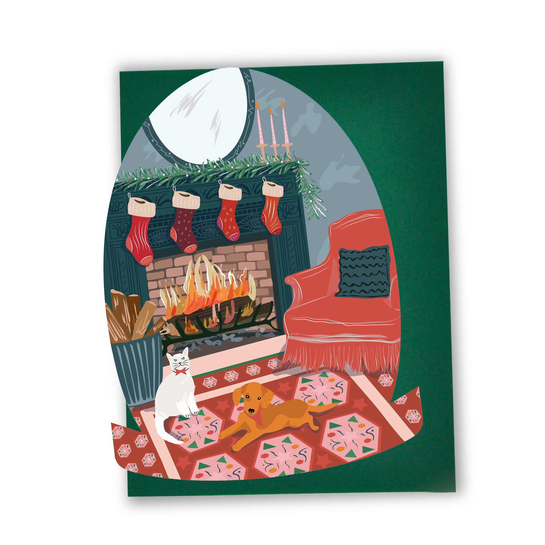 Un tout nouveau format pour ce temps des fêtes : la carte découpée! De quoi plonger avec délice dans cette scène cosy...