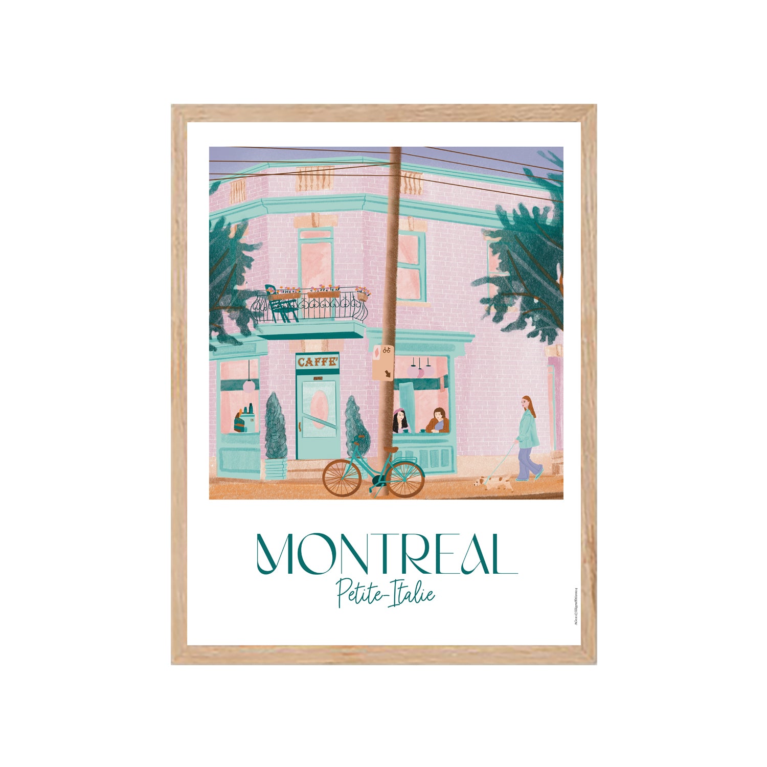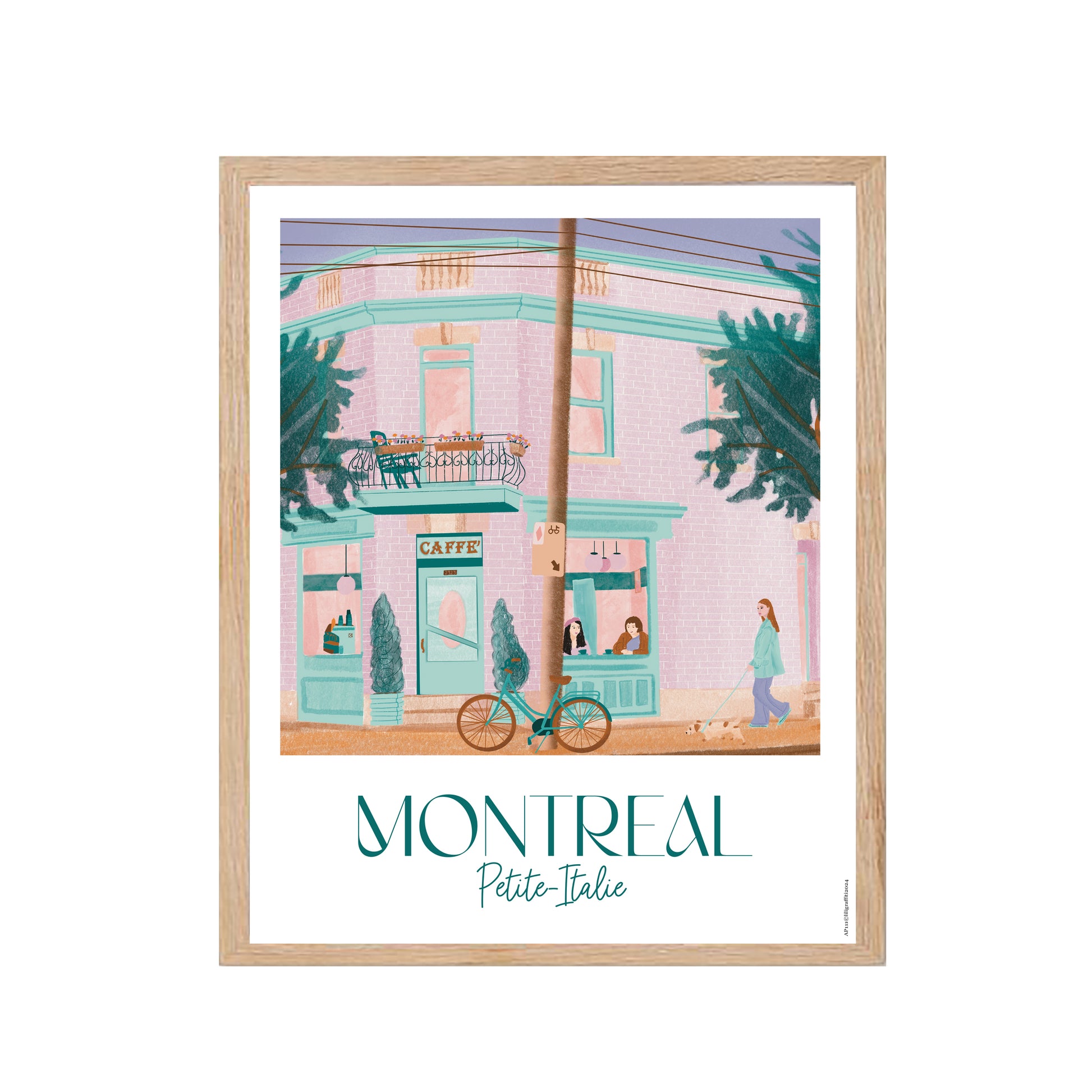 Retrouvez l’ambiance vibrante et festive de la Petite-Italie à Montréal à travers cette affiche murale décorative signée Marie-Laure Plano, talentueuse illustratrice montréalaise. Cette scène colorée évoque les terrasses animées, les cafés chaleureux et l’énergie unique de ce quartier adoré des Montréalais.