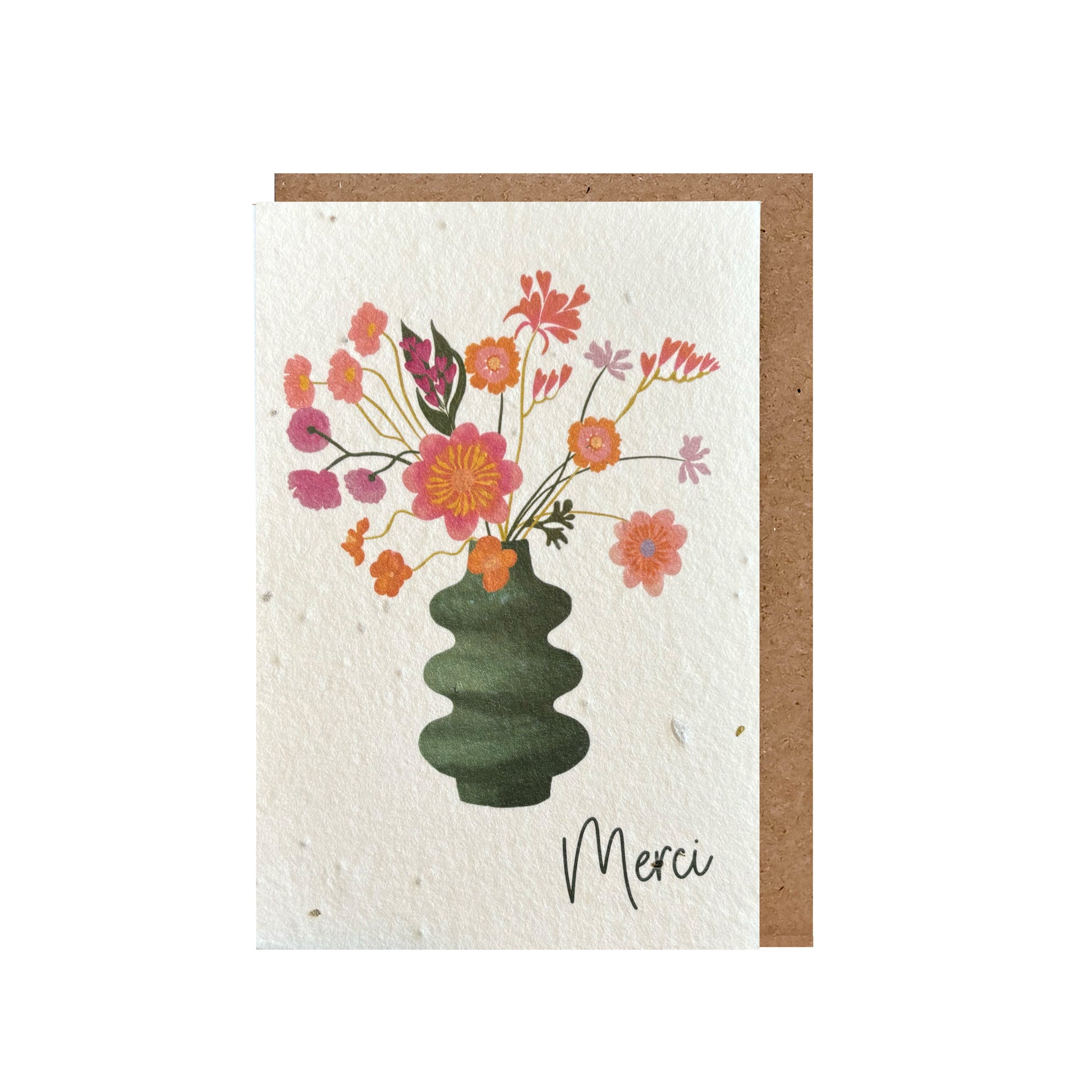 Carte de souhaits illustrée ensemencée – Merci (Fleurs sauvages) | Papeterie montréalaise