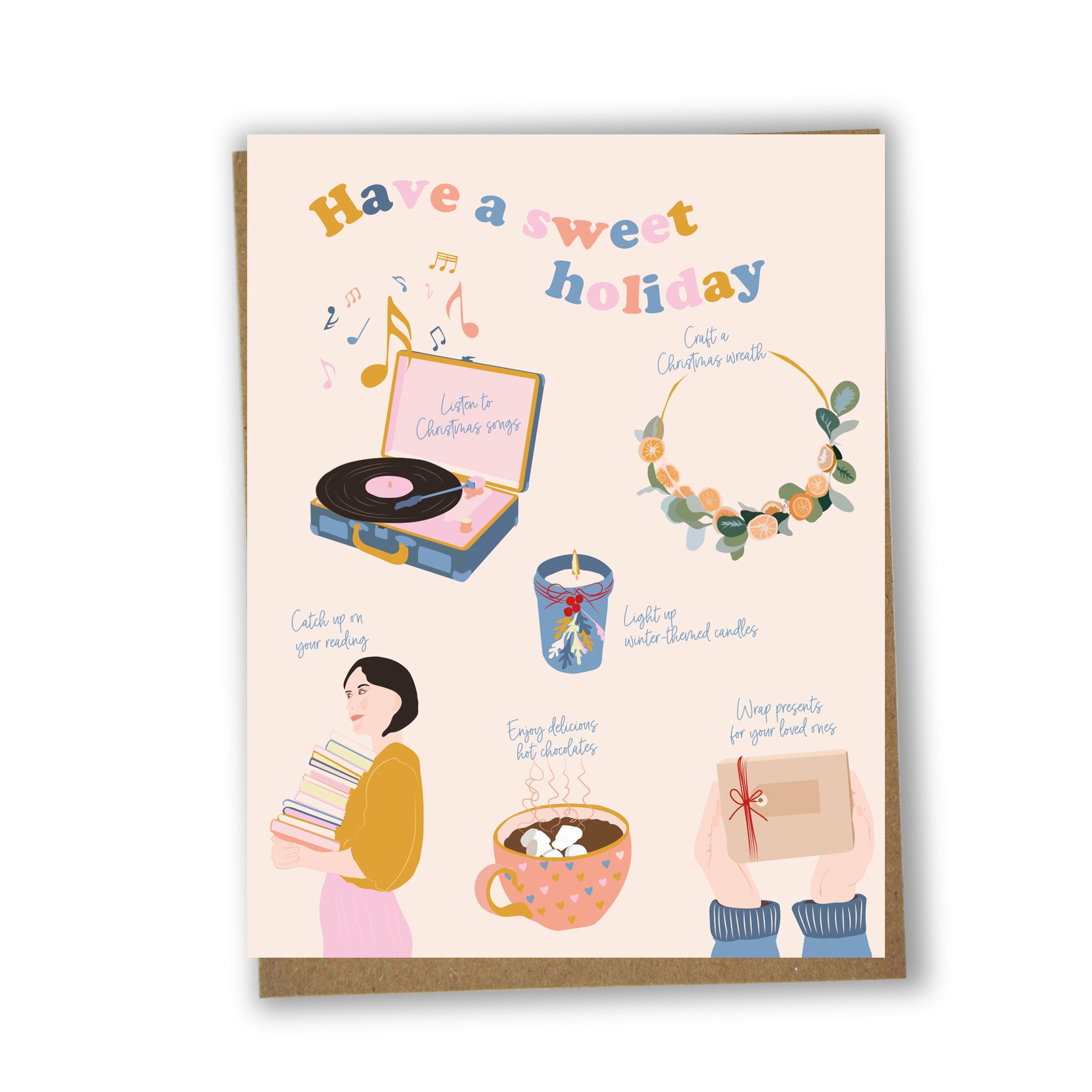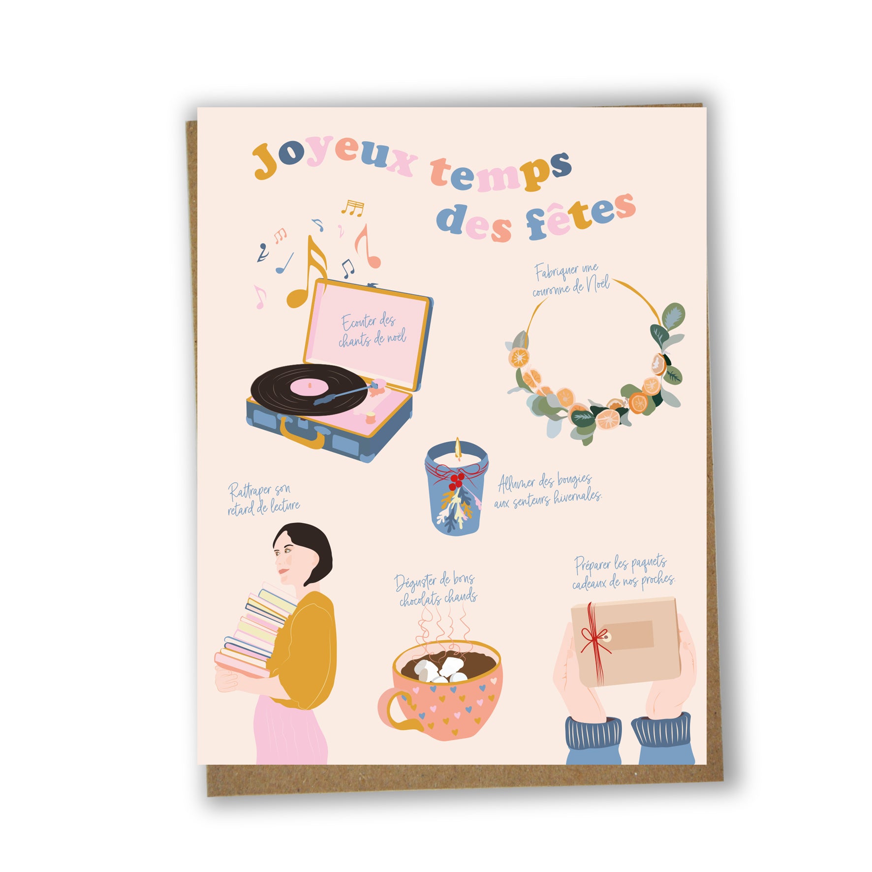 Ces choses que nous préférons durant le temps des fêtes, réunies en une carte de souhaits magique.