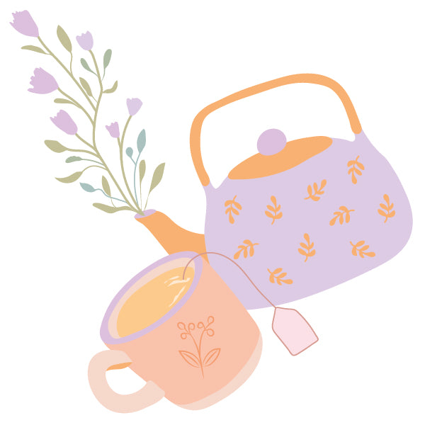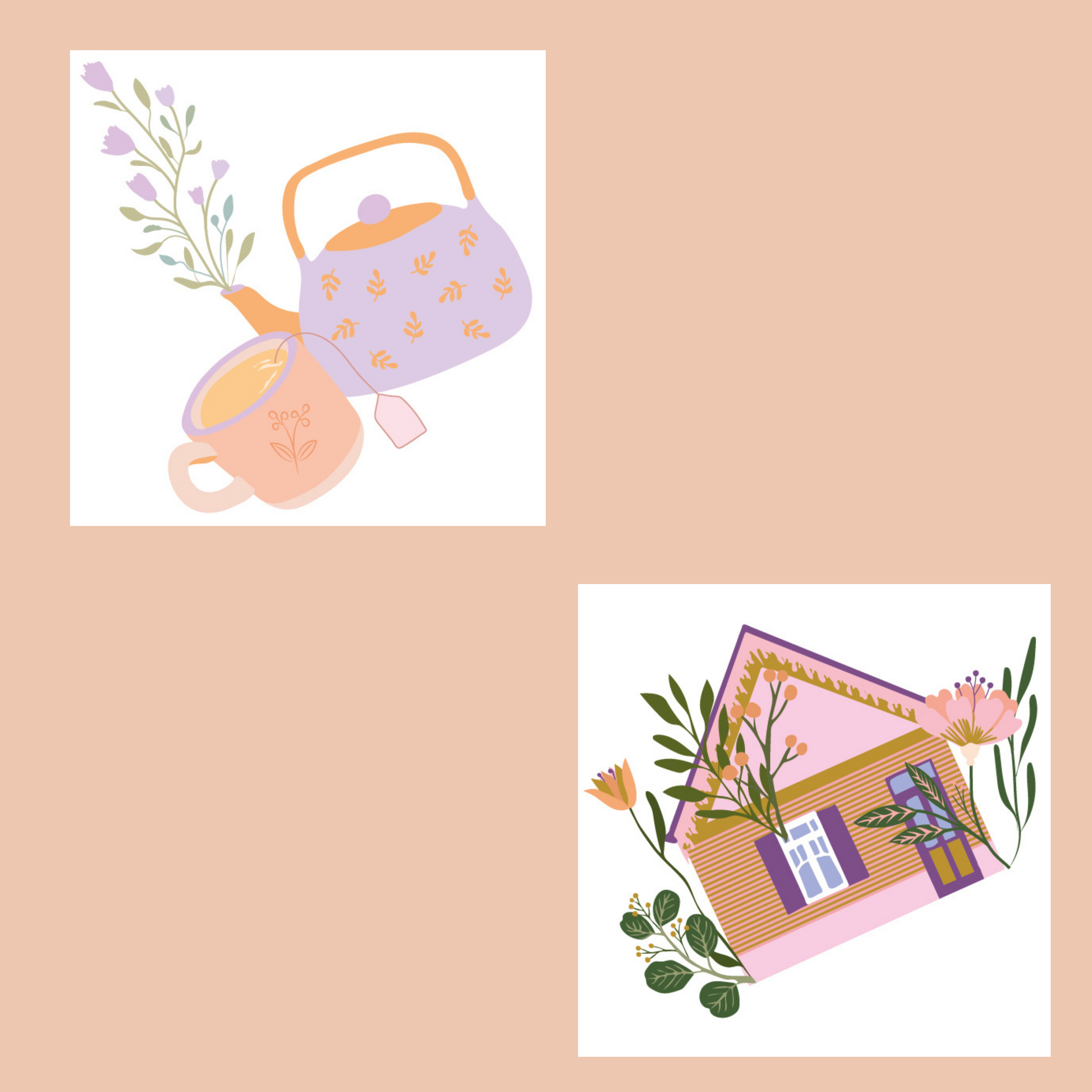 - deux illustrations disponibles : Tasse & théière / Maison fleurie